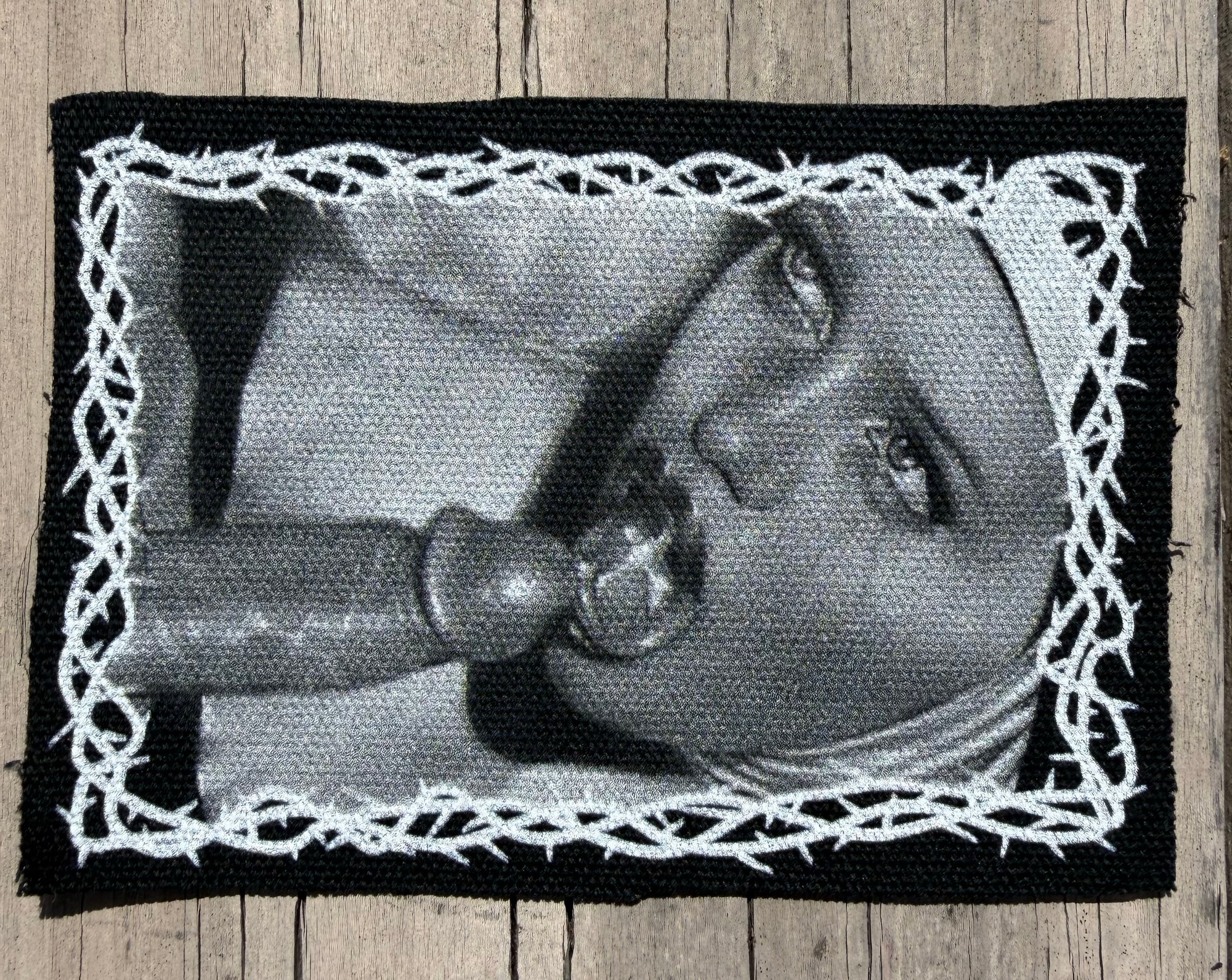 Printed patch on black canvas