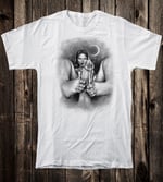 Printed on a 100% cotton crew neck tee.