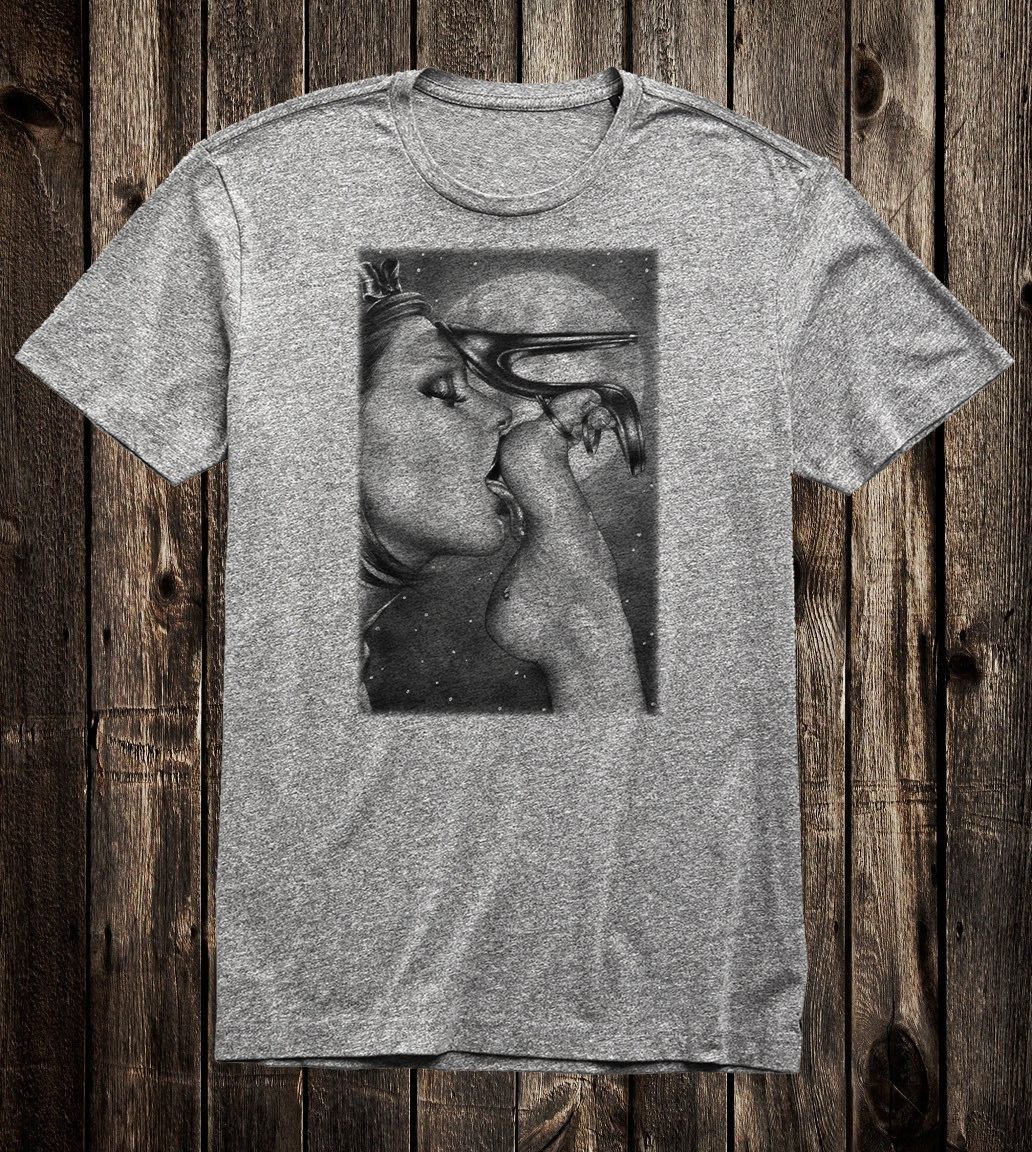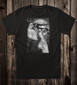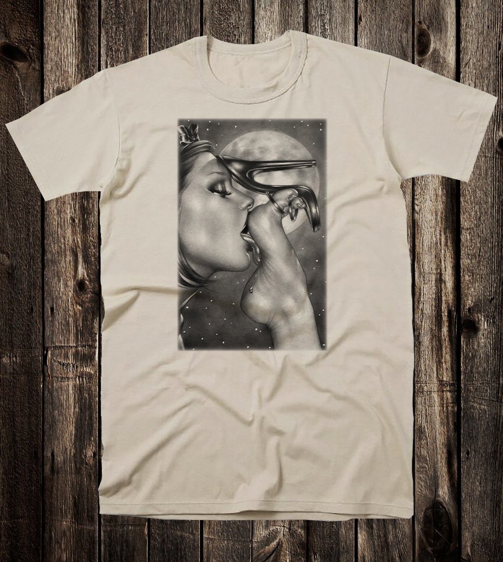 Printed on a 100% cotton crew neck tee.