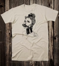 Printed on a 100% cotton crew neck tee.